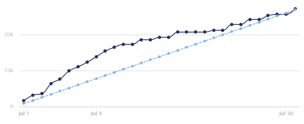 I came to terms with the fact that 50k just wasn’t a realistic goal for me in July. So, I changed my goal a few times before I landed on 30k. I lowered it because I was tired of feeling like I wasn’t good enough or like I was a failure if I didn’t write every day. And the more days that I let pass without writing, the harder it became to start writing again.